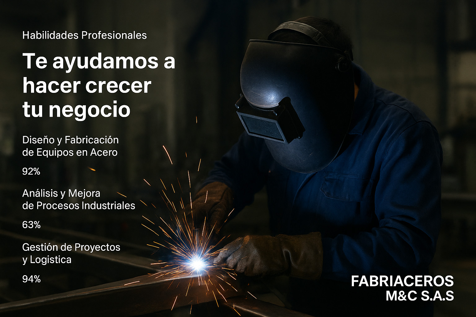 Nuestro equipo cuenta con amplia experiencia y conocimientos prácticos en la industria metalmecánica. Desde el diseño y la fabricación de equipos hasta la ejecución y el transporte de productos terminados, combinamos innovación y calidad para ofrecer resultados de alto impacto. Con nuestro apoyo, podrás optimizar procesos, aprovechar nuevas oportunidades y fortalecer tu empresa con soluciones en acero a la medida.